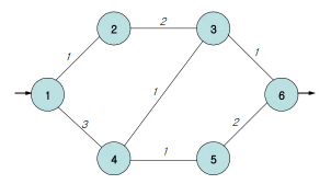그림 1에서 볼 때 검문이 없을 경우 용의자가 도시를 탈출하는데 걸리는 시간은 4분이다. 만일 경찰이 도로(4,3)을 막으면 그 탈출시간을 지연시킬 수 없으므로 지연시간은 0이다. 만일 도로(2,3)을 막으면, 용의자들이 가장 빠르게 탈출할 수 있는 시간은 5분이므로 탈출지연시간은 1분이고, 도로(3,6)을 막으면 탈출지연시간은 2분이다.