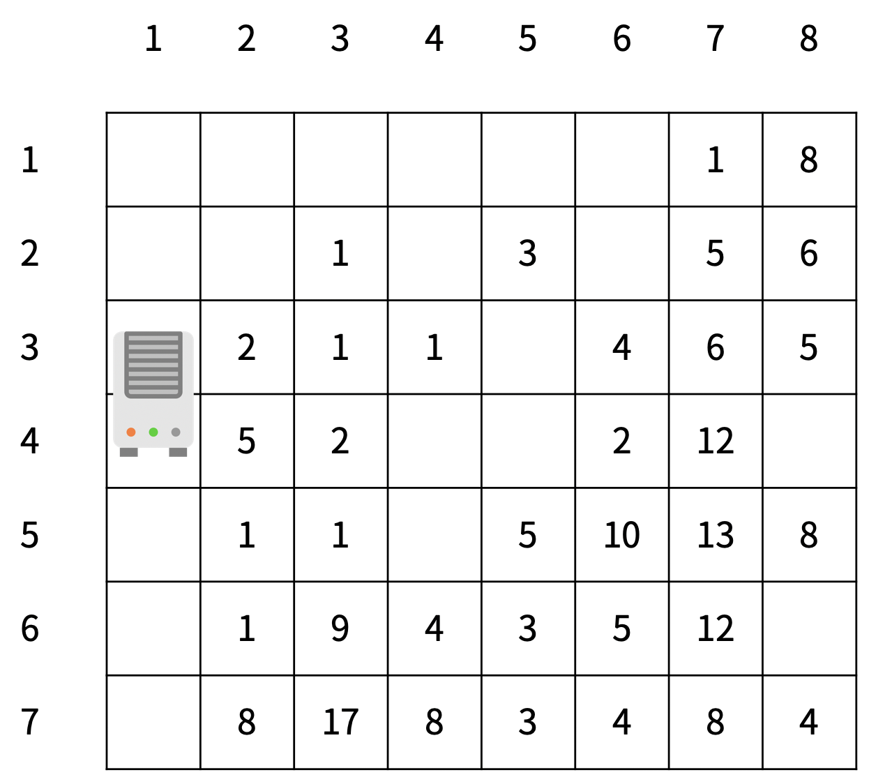 - 인접한 방향에 공기청정기가 있거나, 칸이 없으면 그 방향으로는 확산이 일어나지 않는다.