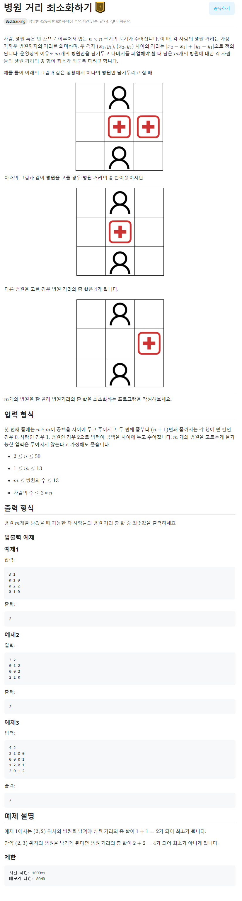 [코드트리 챌린지] 2주차 - 병원 거리 최소화하기 🥇5 본문